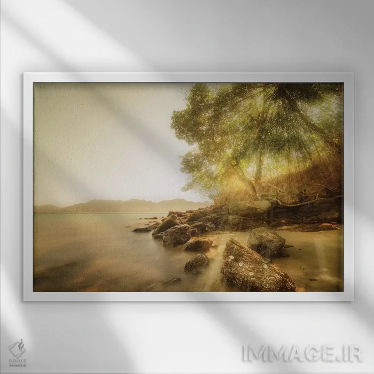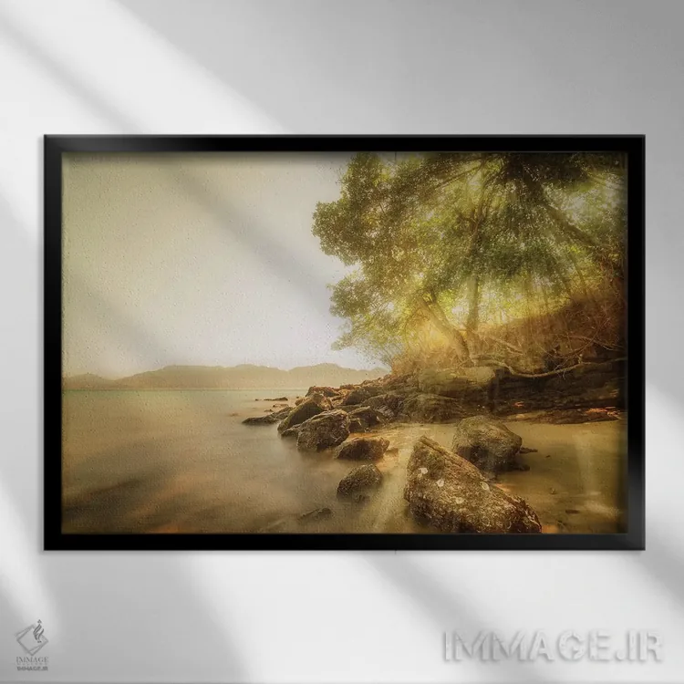براساس پالت گرم اثر، قاب تیک گرم (چوبی) پیشنهاد اول است و مشکی مات (فریم متوسط) مکمل. برای سفارشهای پروژهای با ابعاد و قابهای اختصاصی با ایماژ در تماس باشید.