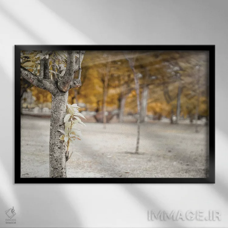 این اثر با عنوان «درخت پاییزی در پارک (عکاسی مادون قرمز)» اثرِ «گلاوکو منهالی» در کنار چوب و پارچههای روشن، عالی مینشیند؛ برای فضای غذاخوری انتخابی خوشسلیقه است. حضورش آرام است، اما بیاثر نیست.