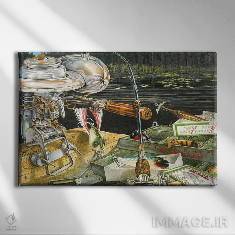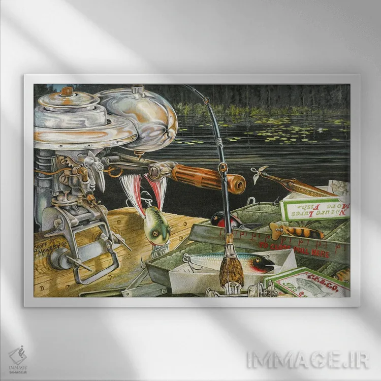 «تستر طعمه ماهی نهر چاب» اثرِ «جف مووری» با حالوهوای دکور کلبه و لژ و موضوعِ این اثر، برای کنار چوب تیره و نور گرم انتخابی گرم و صمیمی است.