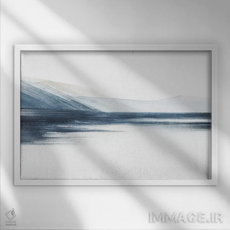 براساس پالت سرد اثر، قاب سفید مات (فریم باریک) پیشنهاد اول است و نقرهای برسخورده (متالیک) مکمل. برای سفارشهای پروژهای با ابعاد و قابهای اختصاصی با ایماژ در تماس باشید.
