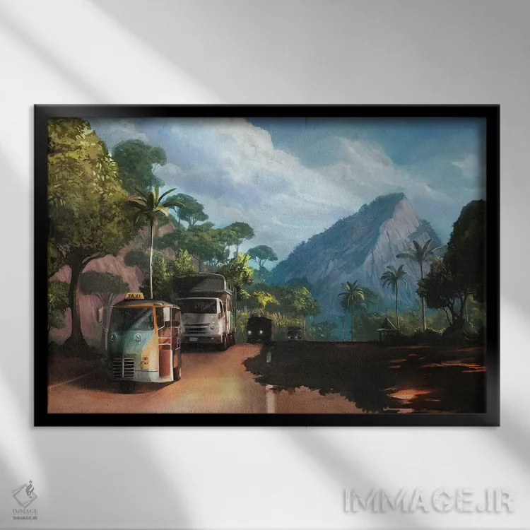 براساس پالت ترکیبی اثر، قاب تیک گرم (چوبی) پیشنهاد اول است و مشکی مات (فریم متوسط) مکمل. برای سفارشهای پروژهای با ابعاد و قابهای اختصاصی با ایماژ در تماس باشید.