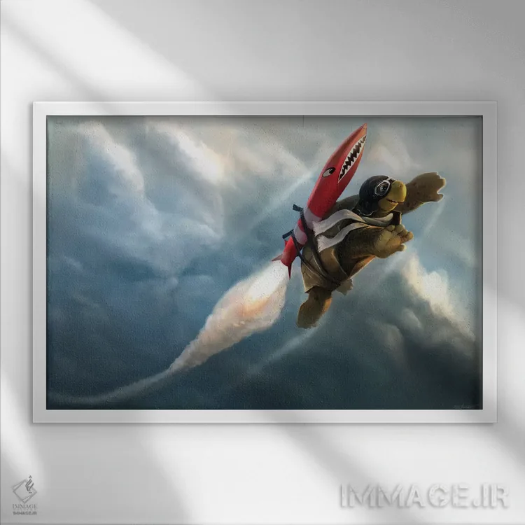 اگر به آثار حیوانات علاقه دارید، «پیشی گرفتن از ابرها» اثرِ «استیو گود» فضا را صمیمیتر و دعوتکنندهتر نشان میدهد، برای نشیمنهای خانوادگی گزینهٔ مناسبیست. به دیوار، قصه میدهد—اما قصهای آرام و شیک.