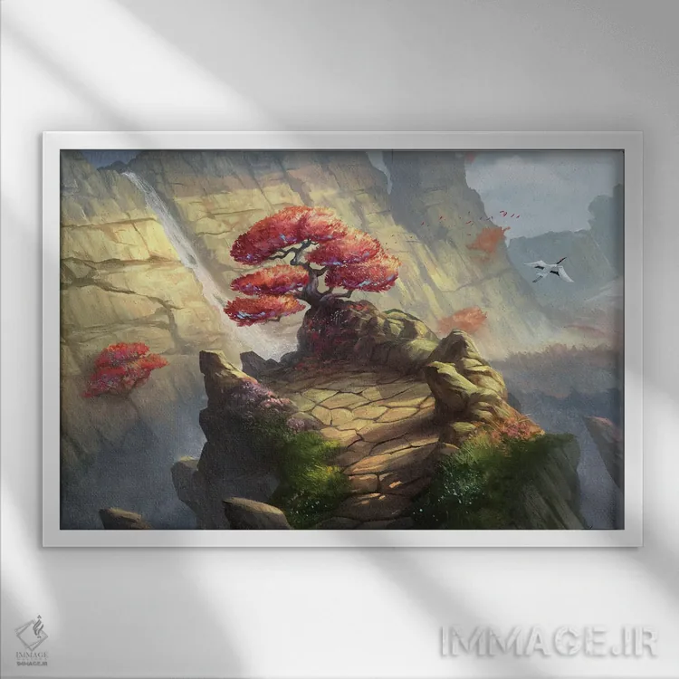 براساس پالت گرم اثر، قاب بلوط روشن (چوبی) پیشنهاد اول است و استخوانی ملایم مکمل. برای سفارشهای پروژهای با ابعاد و قابهای اختصاصی با ایماژ در تماس باشید.