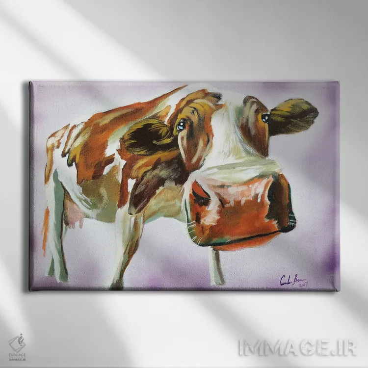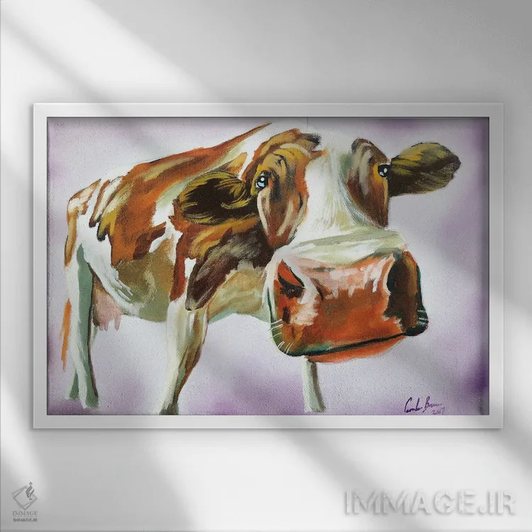 اگر میخواهید دیوار کمی سرزندگیِ محترمانه داشته باشد، «گاو قهوهای و سفید» اثرِ «گوردون بروس» برای دکورهای مینیمال، یک نقطهٔ توجه میسازد، برای راهروها و ورودیهای گرم گزینهٔ مناسبیست. به دیوار، قصه میدهد—اما قصهای آرام و شیک.