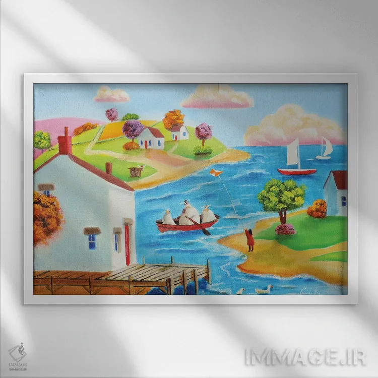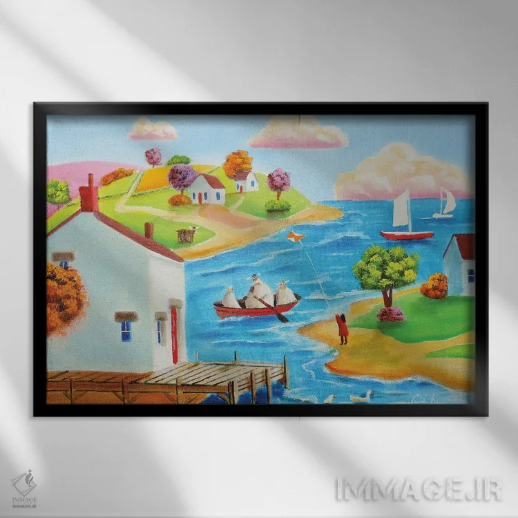 براساس پالت ترکیبی اثر، قاب تیک گرم (چوبی) پیشنهاد اول است و مشکی مات (فریم متوسط) مکمل. برای سفارشهای پروژهای با ابعاد و قابهای اختصاصی با ایماژ در تماس باشید.