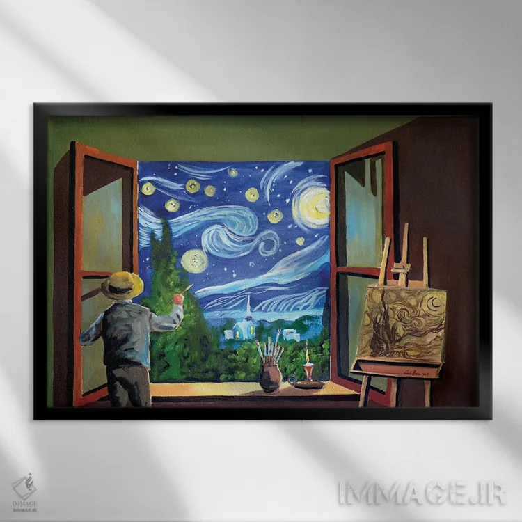 برای دیواری که میخواهید «روایت» داشته باشد، «ون گوگ نقاش شب پرستاره» اثرِ «گوردون بروس» فضا را روایتدارتر و زندهتر کند؛ برای اتاقهای رسمی انتخابی خوشسلیقه است. فضا را شلوغ نمیکند؛ فقط روایت اضافه میکند.