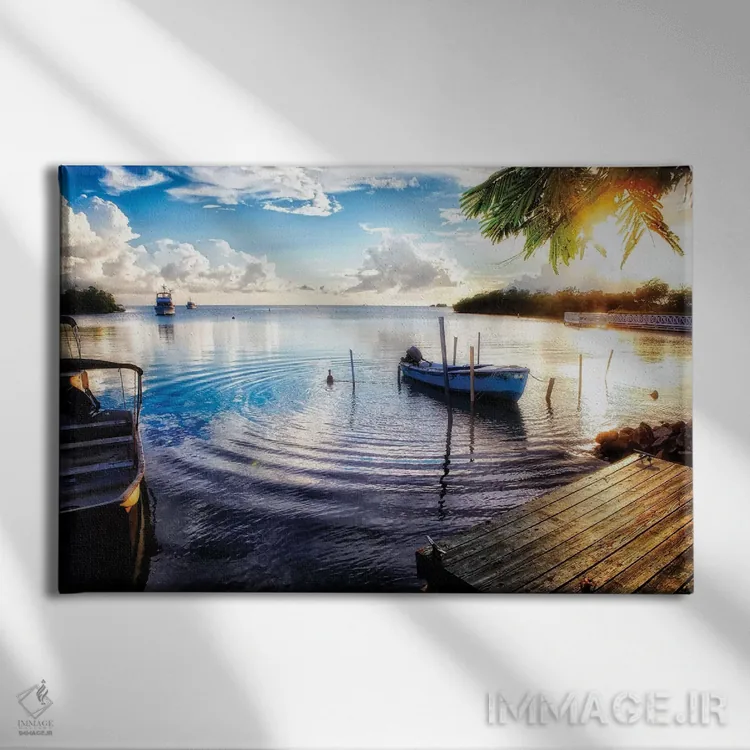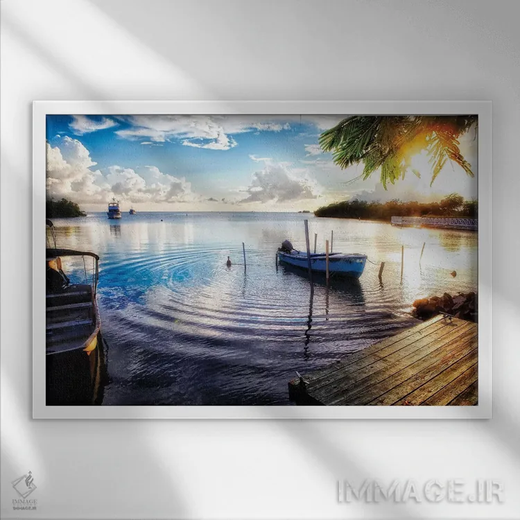 وقتی چیدمان را با دقت میچینید، «غروب در روستای ماهیگیری، لا پارگرا، پورتوریکو» اثرِ «جورج اوزه» جلوهٔ دیوار را منسجمتر میکند؛ برای فضاهایی که میخواهید آرام اما جدی دیده شوند پیشنهاد میشود. به دیوار حس «تمامشده» میدهد.