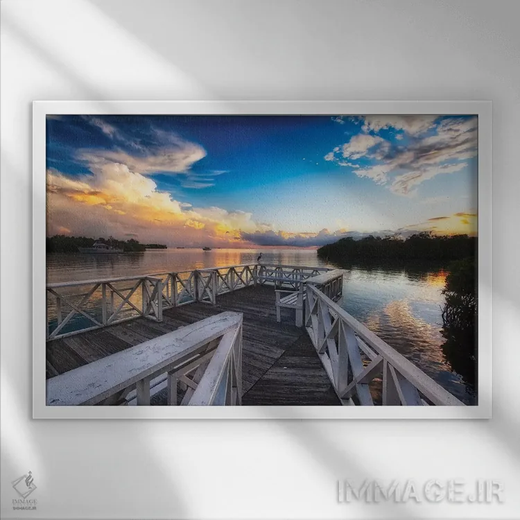 برای خانههایی که به زیباییِ آرام علاقه دارند، «اسکله چوبی با غروب، لا پارگرا، پورتوریکو» اثرِ «جورج اوزه» تضادهای رنگی را خوشقوارهتر میکند؛ برای دکورهایی که بافت و جزئیات در آن مهم است پیشنهاد میشود. برای هدیه دادن هم انتخابی محترمانه و امن است.