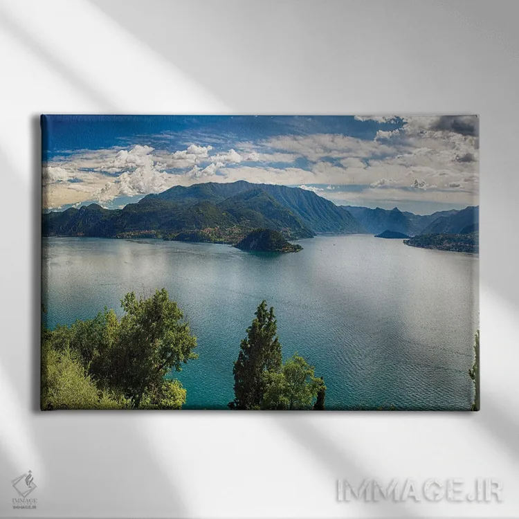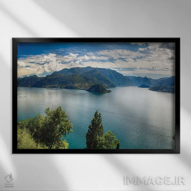 وقتی چیدمان را با دقت میچینید، «نمای پانوراما از دریاچه کومو» اثرِ «جورج اوزه» سلیقهٔ صاحبخانه را بیاغراق نشان میدهد؛ برای راهروها و ورودیهای مینیمال پیشنهاد میشود. یک انتخاب خوشسلیقه است که با گذر زمان هم تازه میماند.