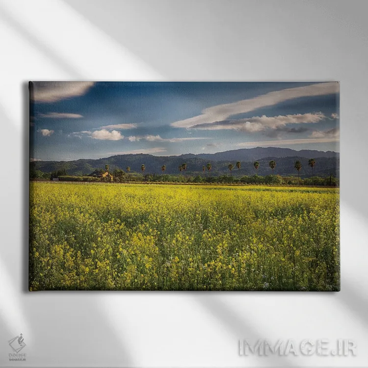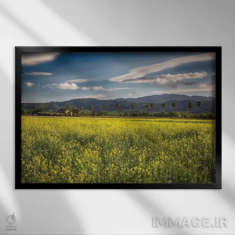 تابلو دکوراتیو چشم انداز بهاری دره ناپا با گل خردل زرد شکفته اثر جورج اوزه