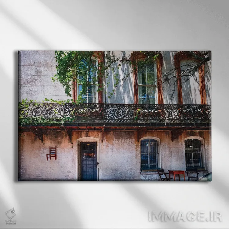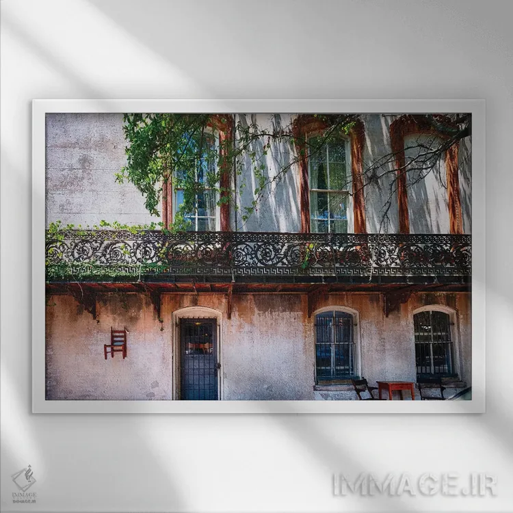 تابلو دکوراتیو خانه قدیمی با بالکن آهنی، ساوانا، جورجیا اثر جورج اوزه