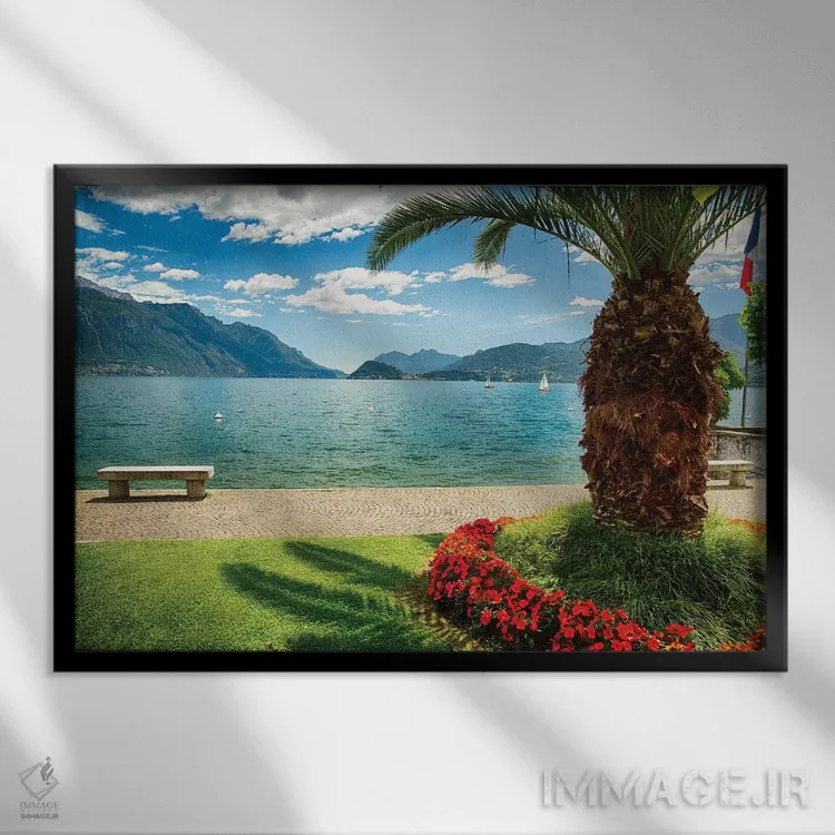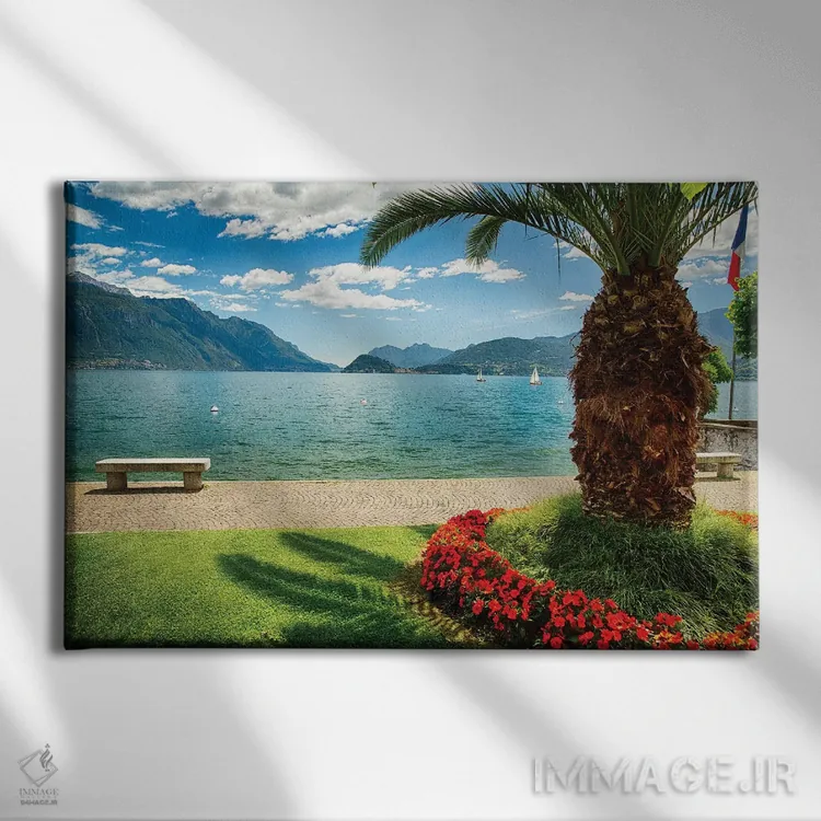 تابلو دکوراتیو نمای دیدنی از دریاچه کومو از پارک، ماجوره، دریاچه کومو، لومبا… اثر جورج اوزه - نمای روبه‌رو روی دیوار