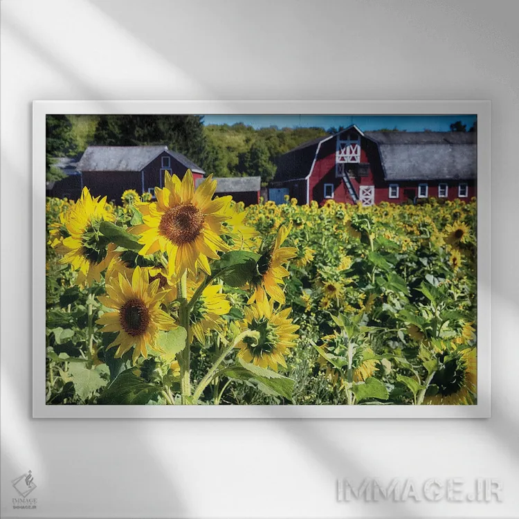 در این اثر، «مزرعه آفتابگردان با طویله قرمز، نیوجرسی» اثرِ «جورج اوزه» حس گالریوار را بیسروصدا وارد خانه میکند؛ برای کافهها و فضاهای عمومی کوچک پیشنهاد میشود. جزئیاتش نزدیکِ کار هم ارزش نگاه دارد.