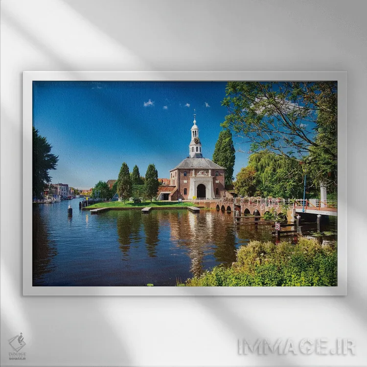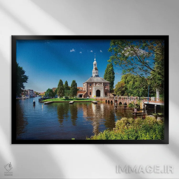 تابلو دکوراتیو زایله پورت یکی از دو دروازه شهر لیدن اثر جورج اوزه - نمای قاب‌دار سفید