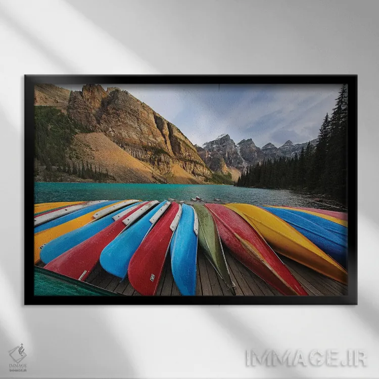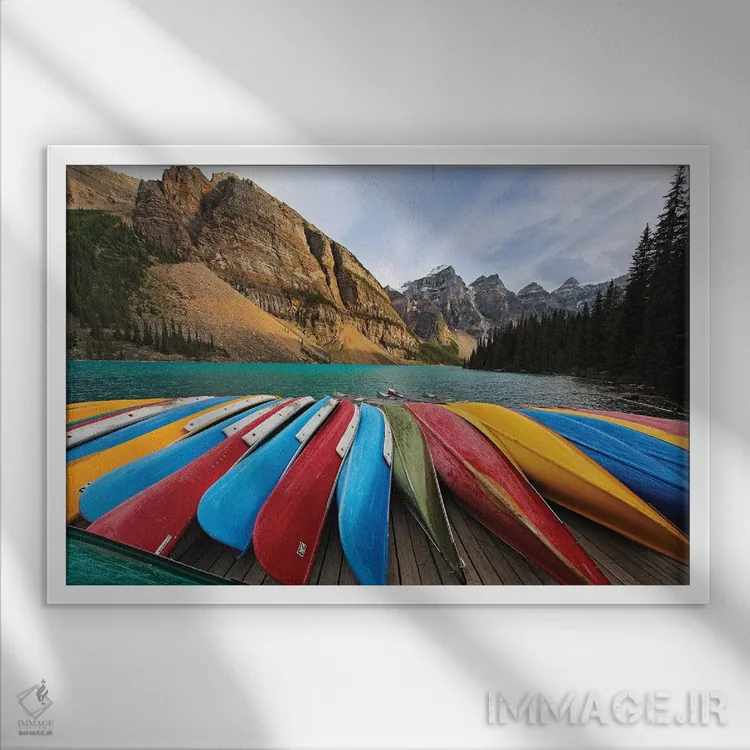 برای دیواری که دوست دارید «حرف داشته باشد»، «کانویهای رنگارنگ روی اسکله، دریاچه مورین، کانادا» اثرِ «جورج اوزه» بین نور و رنگ، تعادل خوشنشینی میسازد؛ برای کافهها و فضاهای عمومی کوچک پیشنهاد میشود. در کنار گیاهان آپارتمانی هم جلوهٔ لطیفی پیدا میکند.