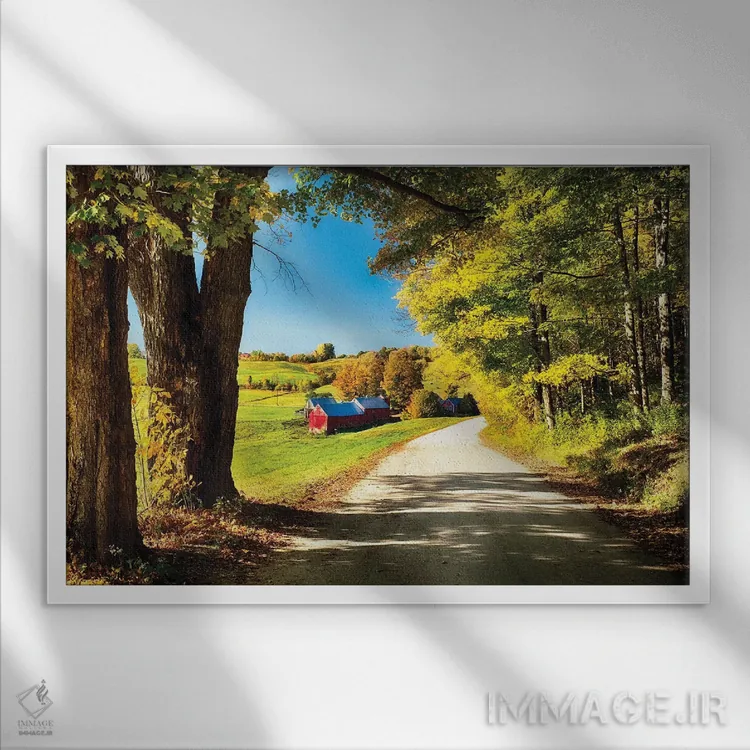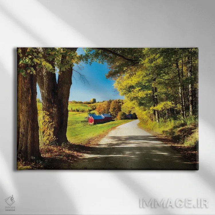 تابلو دکوراتیو مزرعه ورمونت کنار جاده روستایی اثر جورج اوزه - نمای پرسپکتیو محصول