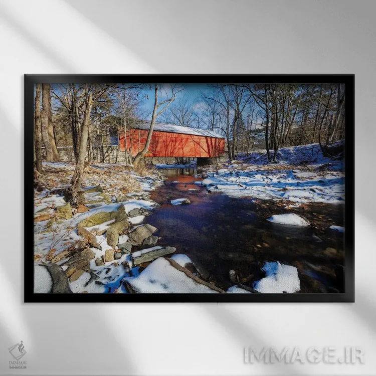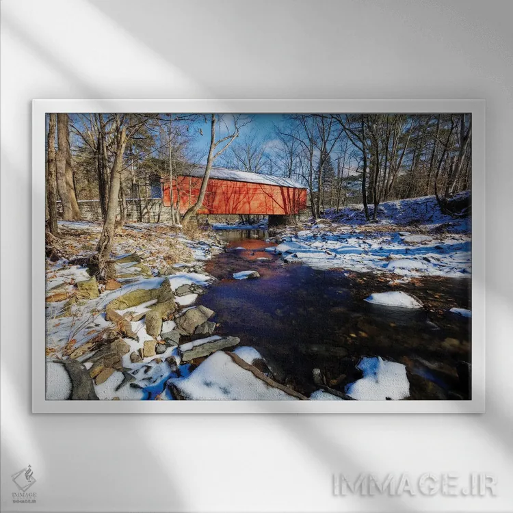 تابلو دکوراتیو پل سرپوشیده بر فراز کابین ران کریک در زمستان، پنسیلوانیا اثر جورج اوزه