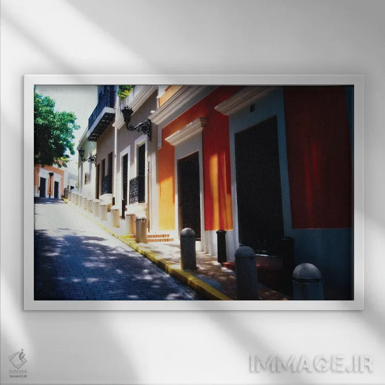 «خیابان کله د سول، سن خوان قدیمی، پورتوریکو» اثرِ «جورج اوزه» میتواند به فضا، روایت ملایم و قابل لمس بدهد؛ برای فضاهایی با نور طبیعی پیشنهاد میشود. هم از دور چشمگیر است و هم از نزدیک پرداخت دارد.