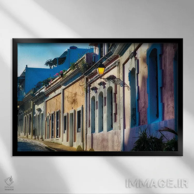 برای فضایی که میخواهید مرتبتر و حرفهایتر دیده شود، «خیابان سنگفرش با خانههای رنگی در نور بعدازظهر، سن خوان، پورتوریکو» اثرِ «جورج اوزه» به دیوار، شخصیت و جهت میدهد؛ برای فضاهایی که میخواهید مرکز توجه داشته باشند پیشنهاد میشود. فضا را شلوغ نمیکند؛ فقط دقیقترش میکند.