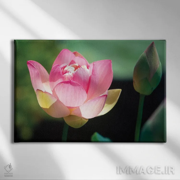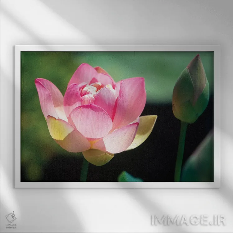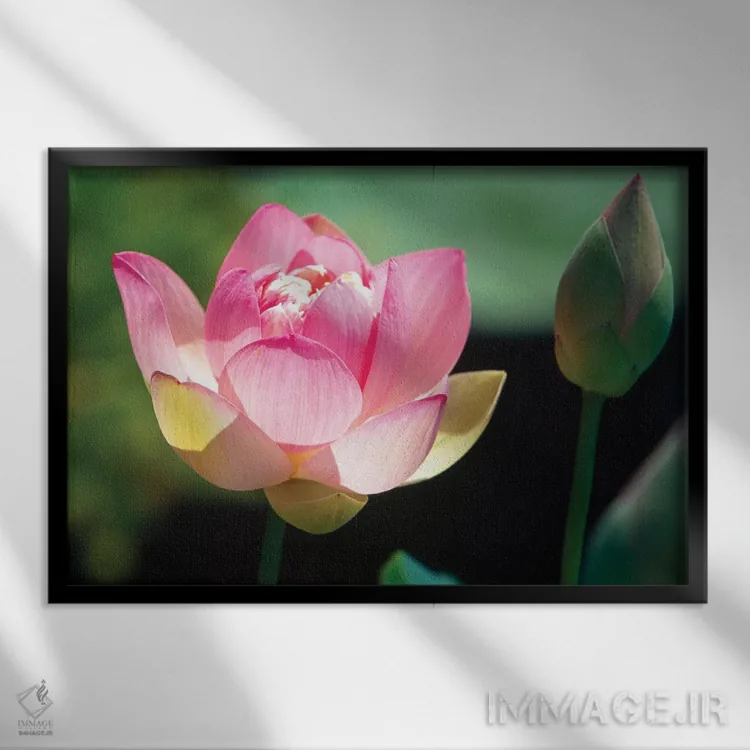 «نمای نزدیک از گل و غنچه نیلوفر صورتی» اثرِ «جورج اوزه» برای فضاهای مدرن هم مناسب است؛ چون تصویر ساده و قابلخواندن است و با چیدمان درگیر نمیشود.