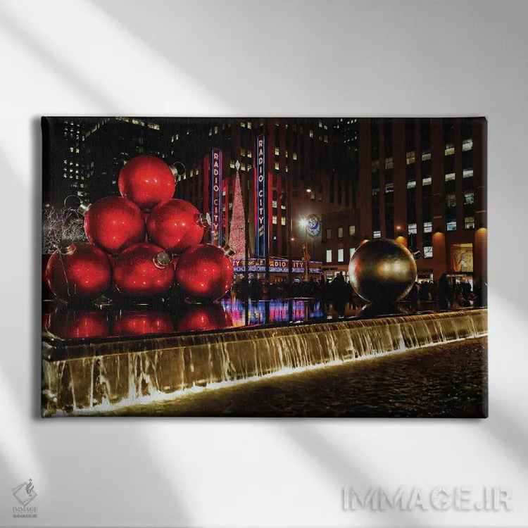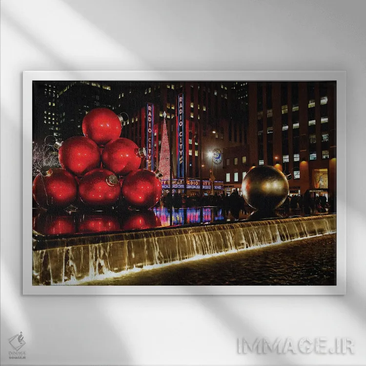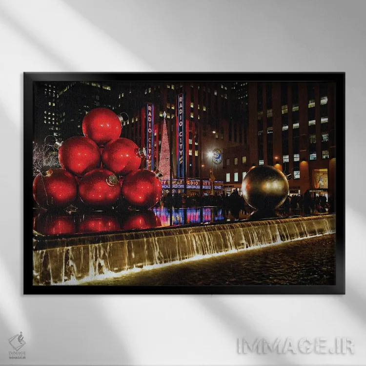 تابلو دکوراتیو نمای شبانه سالن موسیقی رادیو سیتی با تزئینات کریسمس، نیویورک اثر جورج اوزه