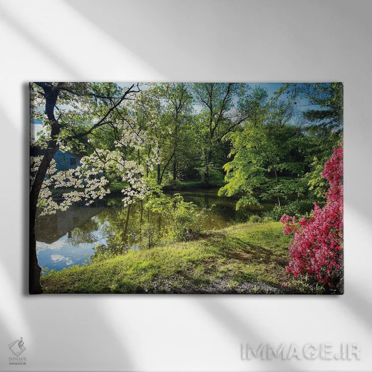 تابلو دکوراتیو شکوفایی آزالیا و داگ وود کنار نهر، پارک ایالتی کانال دلاور و… اثر جورج اوزه