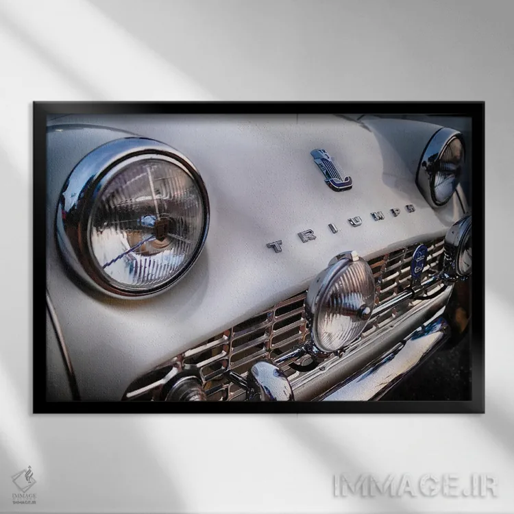 تابلو دکوراتیو نمای نزدیک از جلو خودروی اسپرت بریتانیایی کلاسیک ترایومف TR3… اثر جورج اوزه