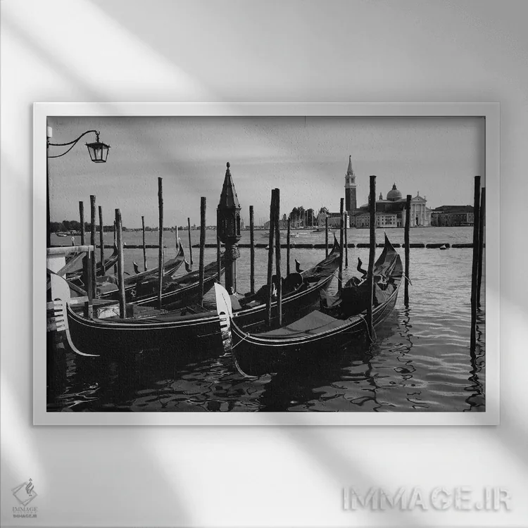 در «گوندولاهای ونیز (قایق سنتی)»، اثرِ «جورج اوزه» این اثر را با زبان سیاهوسفید ارائه میکند؛ برای دکورهای کلاسیک—مدرن یک انتخاب مطمئن و هماهنگپذیر است.