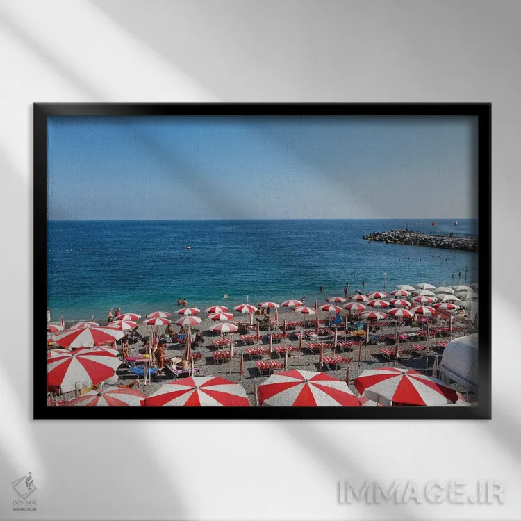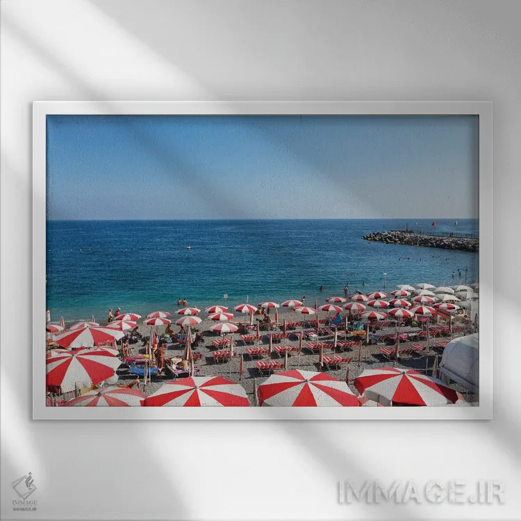 برای فضایی که میخواهید مرتبتر و حرفهایتر دیده شود، «نمای بالا از ساحلی با ردیف چترها و صندلیهای ساحلی، آمالفی، کامپانیا، ایتالیا» اثرِ «جورج اوزه» سلیقهٔ صاحبخانه را بیاغراق نشان میدهد؛ برای راهروها و ورودیهای مینیمال پیشنهاد میشود. روی دیوار، طبیعی و متعادل دیده میشود—بیاغراق و درست.