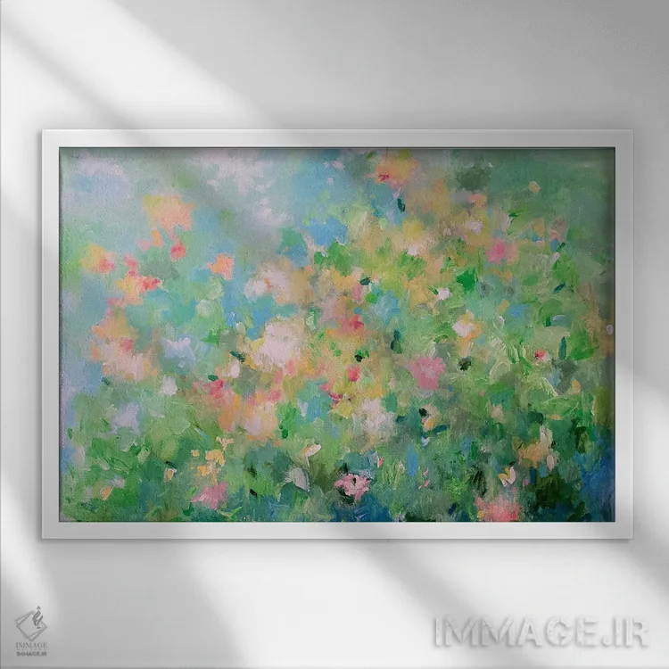 براساس پالت ترکیبی اثر، قاب تیک گرم (چوبی) پیشنهاد اول است و مشکی مات (فریم متوسط) مکمل. برای سفارشهای پروژهای با ابعاد و قابهای اختصاصی با ایماژ در تماس باشید.