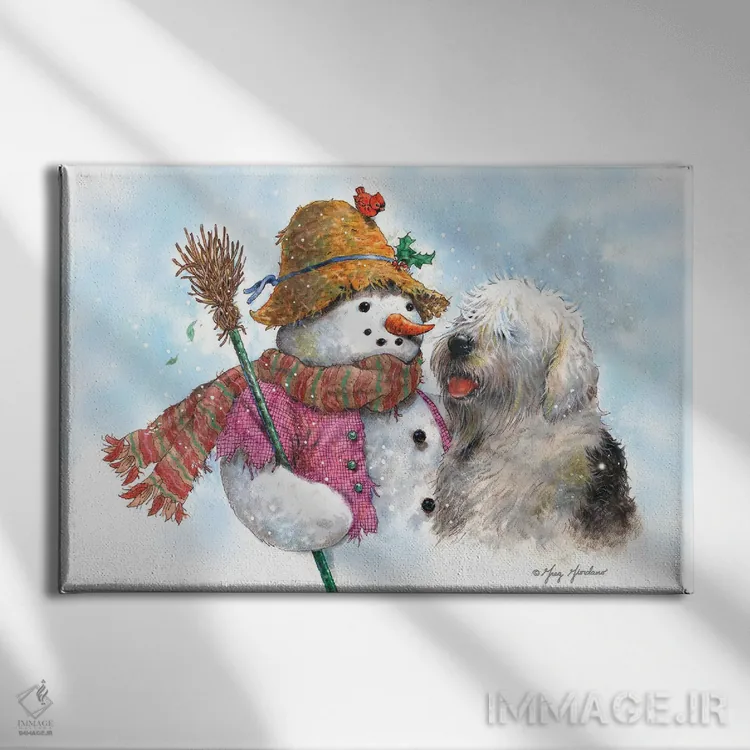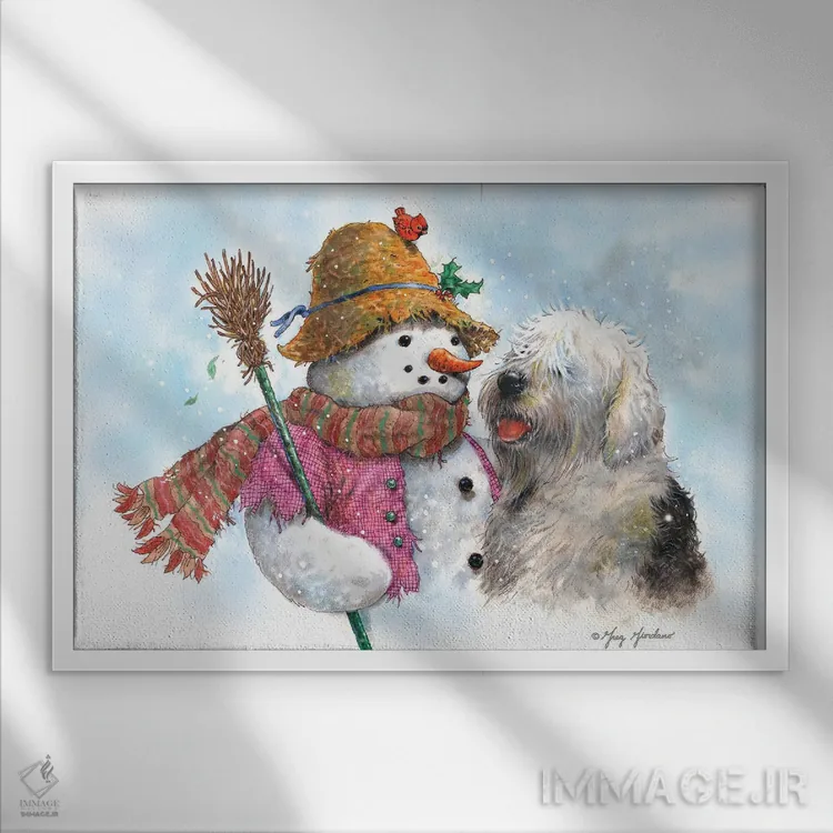 تابلو دکوراتیو آدم برفی و سگ اثر گرگ جوردانو