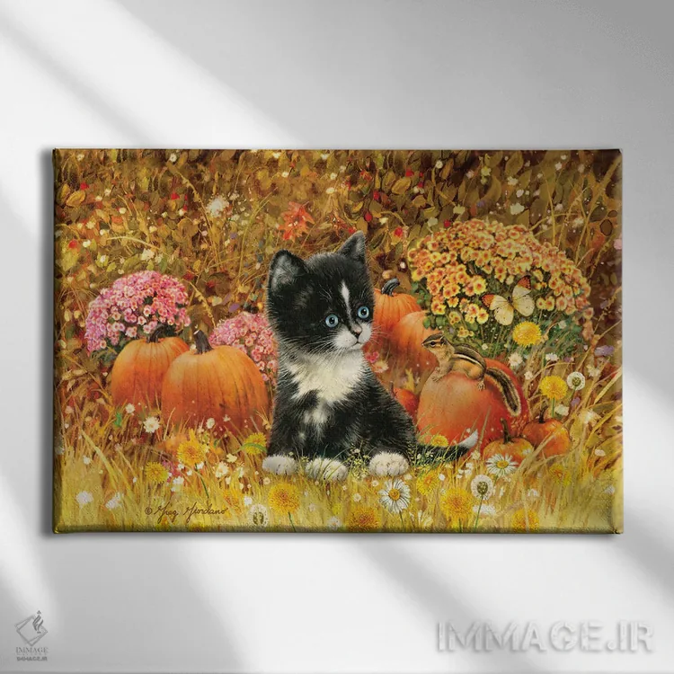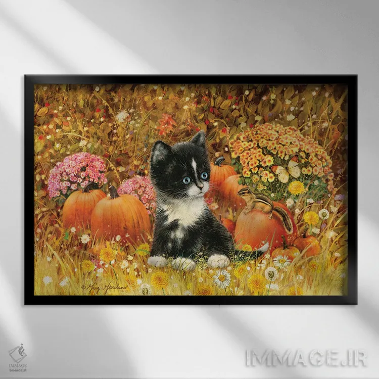 این تابلو با عنوان «گربهٔ پاییزی» اثرِ «گرگ جوردانو»، حسِ گرم و صمیمی به فضا میدهد.