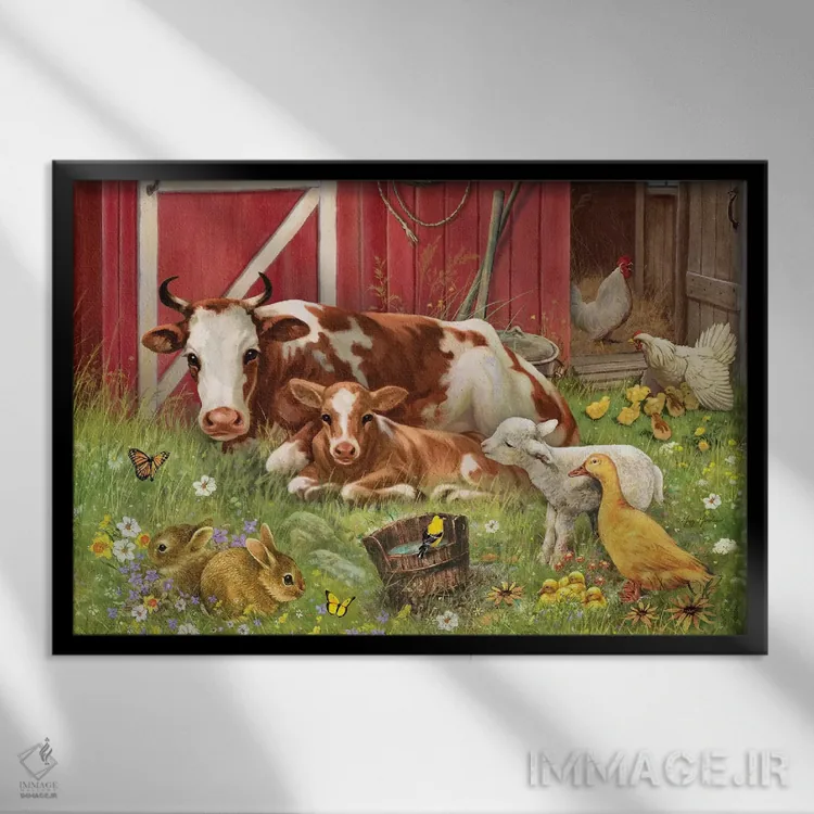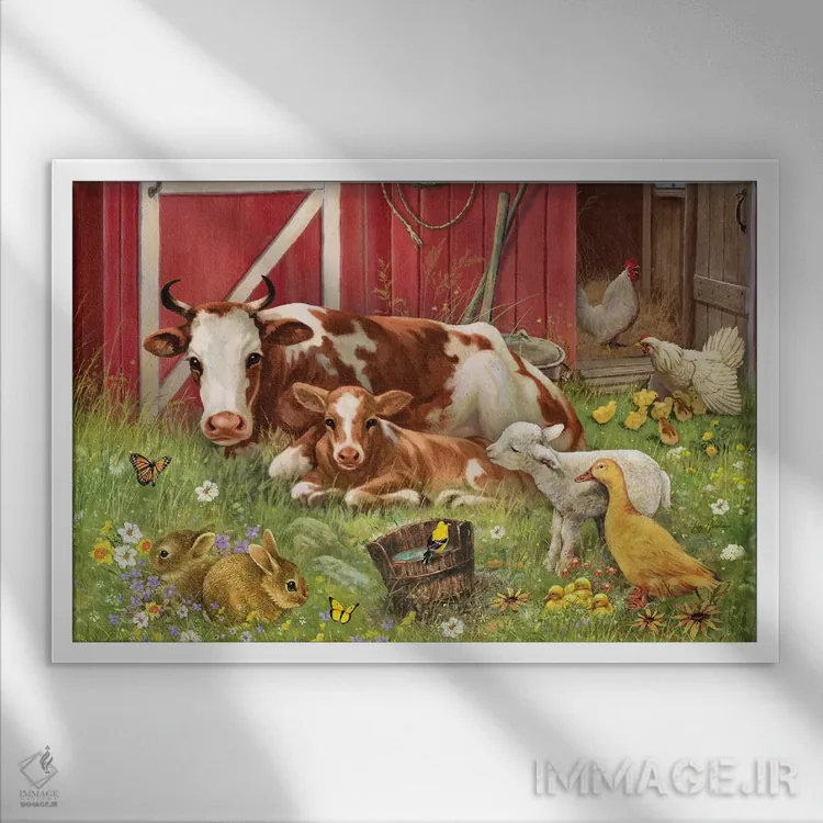 برای دکورهای صمیمی، «بچههای حیوانات مزرعه» اثرِ «گرگ جوردانو» یک لبخند ریز به چیدمان میدهد؛ برای خانههایی با چوب و پارچههای گرم انتخابی خوشسلیقه است. با نورپردازی نقطهای، جذابتر هم میشود.
