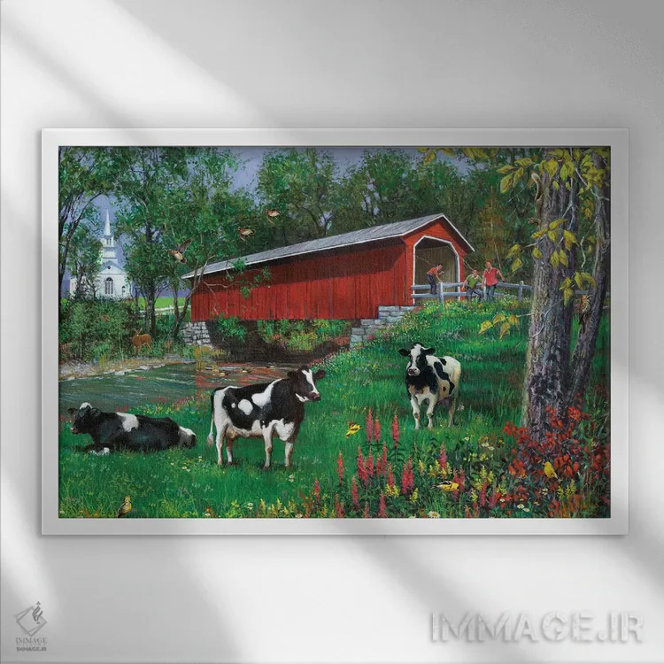 برای اتاقی که به یک عنصر دوستداشتنی نیاز دارد، «پل سرپوشیده روز تابستانی» اثرِ «جی. چارلز» به دیوار، انرژیِ نرم و زنده میدهد؛ برای اتاق کودک (بدون لحن کودکانه) انتخابی خوشسلیقه است. با قاب چوبی یا مشکی، حس مرتبتری پیدا میکند.
