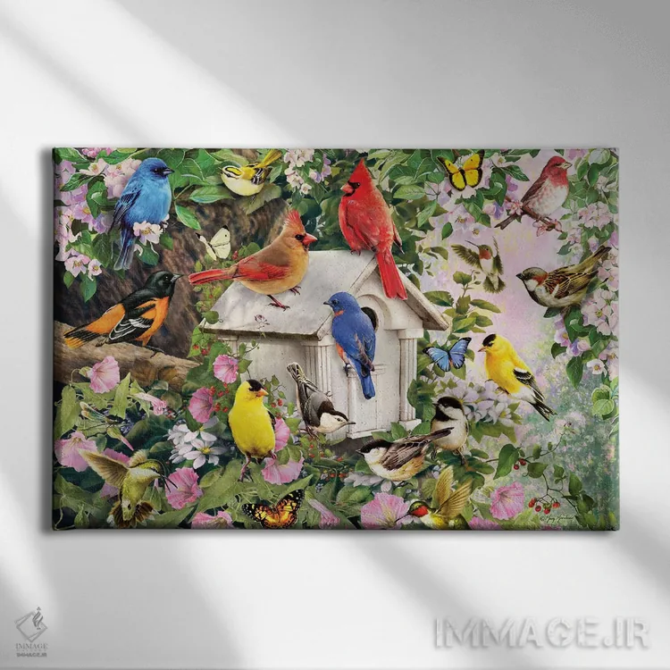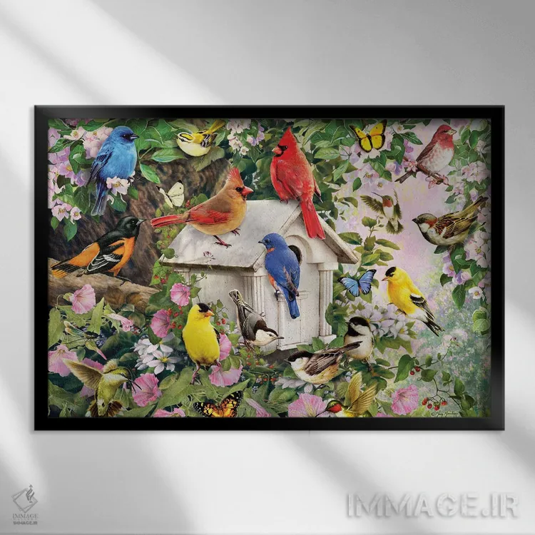 برای دکورهای صمیمی، «پرندگان کنار خانه پرنده» اثرِ «گرگ جوردانو» فضا را صمیمیتر و دعوتکنندهتر نشان میدهد؛ برای راهروها و ورودیهای گرم انتخابی خوشسلیقه است. در کنار گیاهان و نور طبیعی، جذابتر هم میشود.
