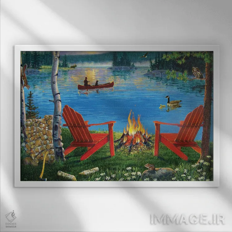 تابلو دکوراتیو صندلی های آدیرونداک کنار دریاچه اثر جی. چارلز