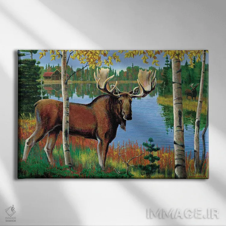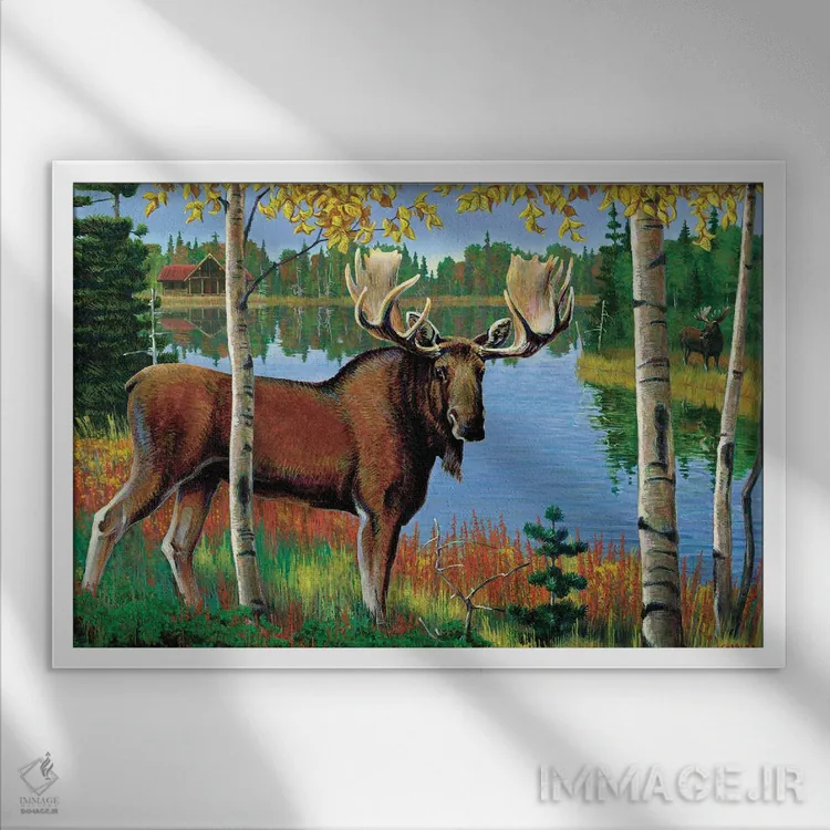 «گوزن شمالی کنار دریاچه» اثرِ «جی. چارلز» میتواند بافت و جزئیات را طوری نشان بدهد که نگاه میماند؛ برای کافههای کوچک و صمیمی پیشنهاد میشود. هر بار نگاهش میکنید، یک جزئیات تازه به چشم میآید.