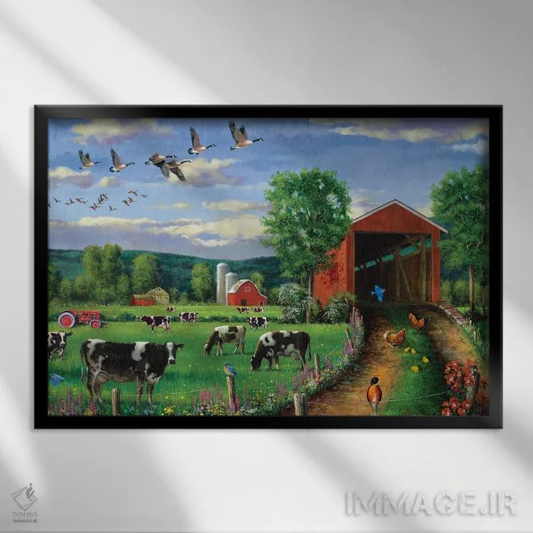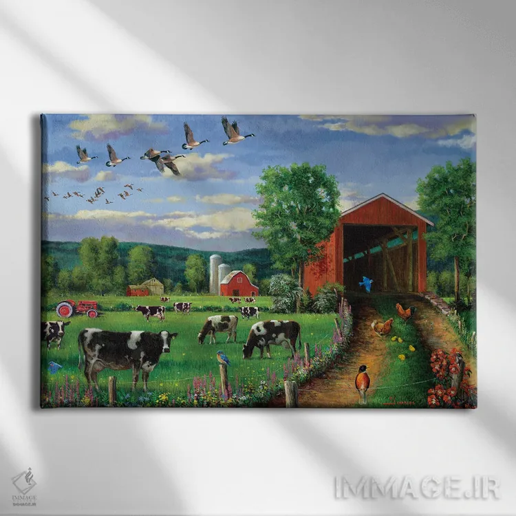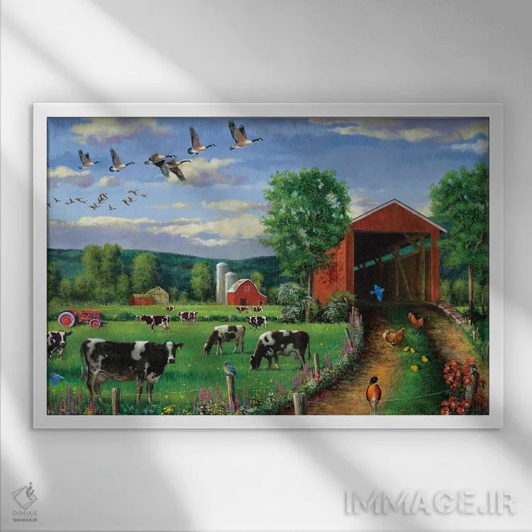 تابلو دکوراتیو غازهایی که بالای پل سرپوشیده پرواز می کنند اثر جی. چارلز