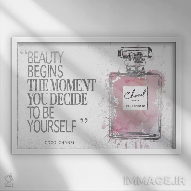 تابلو دکوراتیو بطری عطر زیبایی آغاز می شود، نقره ای و صورتی ملایم اثر آماندا گرینوود