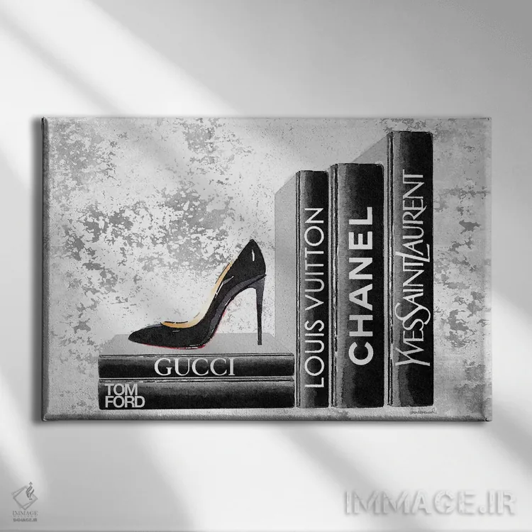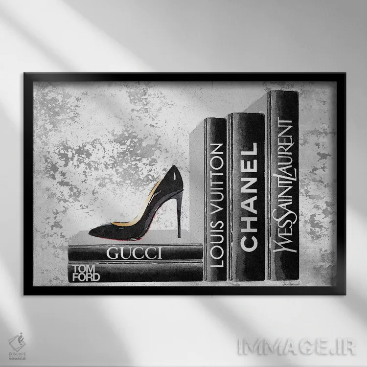 تابلو دکوراتیو کتاب های کنار مشکی با کفش اثر آماندا گرینوود