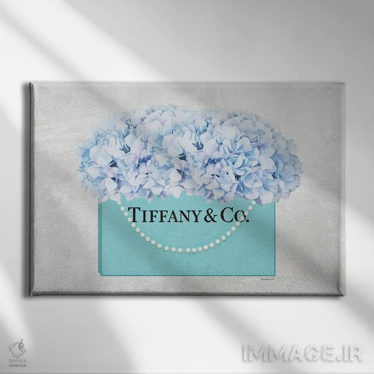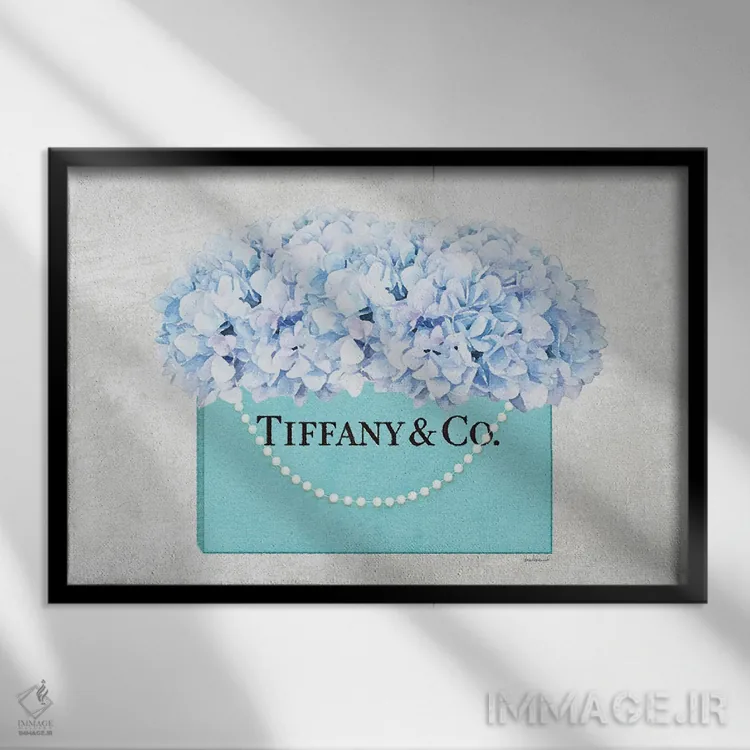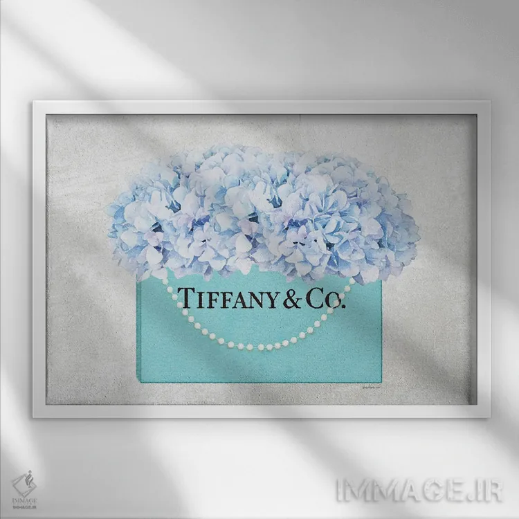 این تابلو با عنوان «کیف خرید فیروزهای با دسته مرواریدی و گل ادریسی آبی بافتدار» اثرِ «آماندا گرینوود»، کنار آینه و رختکن یا اتاق لباس عالی مینشیند.