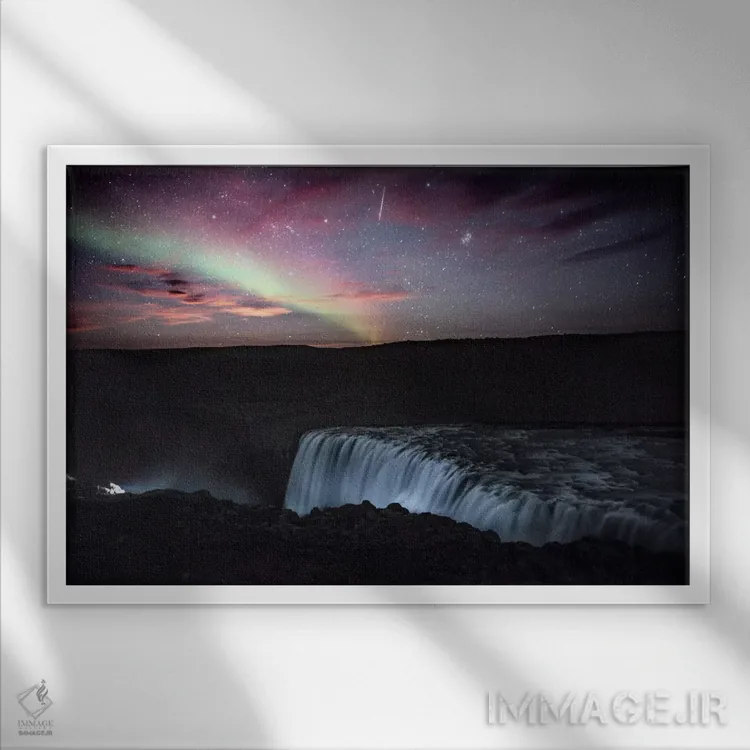 این تابلو با عنوان «شفق قطبی، شهاب سنگ، ماه در حال طلوع» اثرِ «لوک آنتونی گرم» یک «نقطهٔ مکث» خوشسلیقه میسازد؛ برای فضاهایی با نور طبیعی پیشنهاد میشود. در کنار قاب مناسب، جلوهٔ کار چند برابر میشود.