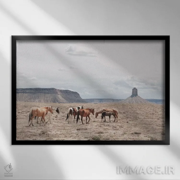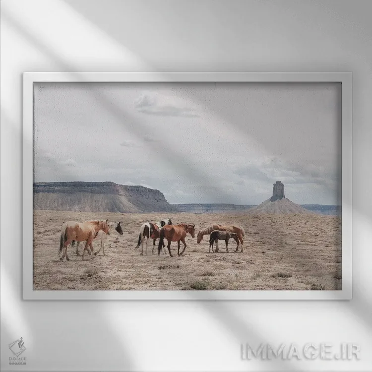 براساس پالت گرم اثر، قاب بلوط روشن (چوبی) پیشنهاد اول است و استخوانی ملایم مکمل. برای سفارشهای پروژهای با ابعاد و قابهای اختصاصی با ایماژ در تماس باشید.