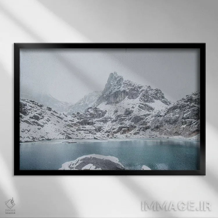 براساس پالت سرد اثر، قاب سفید مات (فریم باریک) پیشنهاد اول است و نقرهای برسخورده (متالیک) مکمل. برای سفارشهای پروژهای با ابعاد و قابهای اختصاصی با ایماژ در تماس باشید.