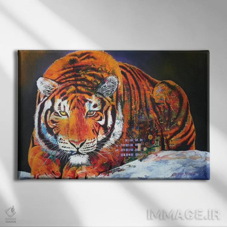 براساس پالت ترکیبی اثر، قاب تیک گرم (چوبی) پیشنهاد اول است و مشکی مات (فریم متوسط) مکمل. برای سفارشهای پروژهای با ابعاد و قابهای اختصاصی با ایماژ در تماس باشید.