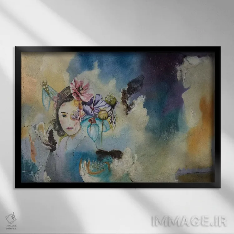براساس پالت ترکیبی اثر، قاب بلوط روشن (چوبی) پیشنهاد اول است و استخوانی ملایم مکمل. برای سفارشهای پروژهای با ابعاد و قابهای اختصاصی با ایماژ در تماس باشید.