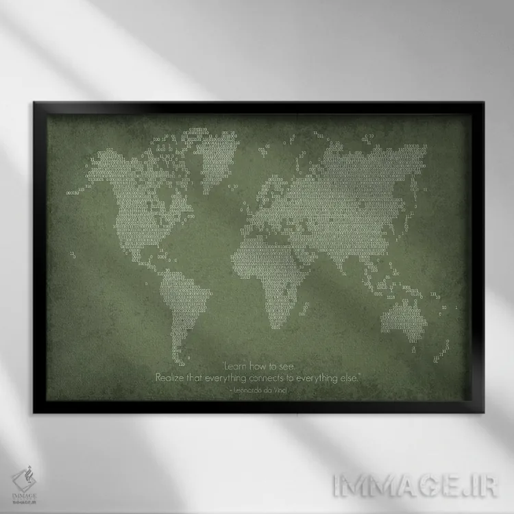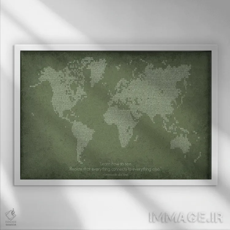 تابلو دکوراتیو نقشه جهان به صورت کد باینری اثر گت یور نرد آن