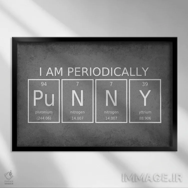 این اثر با زبان هنری ساخته شده و موضوعِ این اثر را امروزیتر نشان میدهد: «من به صورت دورهای شوخطبع هستم (بازی با جدول تناوبی)» اثرِ «گت یور نرد آن (برند خلاقانه)».
