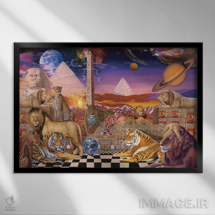 براساس پالت ترکیبی اثر، قاب تیک گرم (چوبی) پیشنهاد اول است و مشکی مات (فریم متوسط) مکمل. برای سفارشهای پروژهای با ابعاد و قابهای اختصاصی با ایماژ در تماس باشید.
