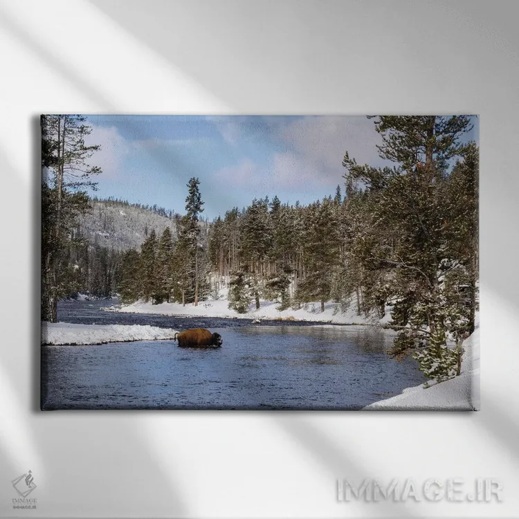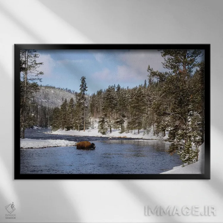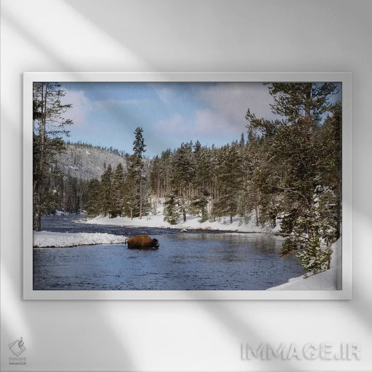 تابلو دکوراتیو bison crossing river in winter,پارک ملی یلواستون، بوفالو در… اثر جورج تئودور